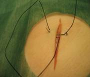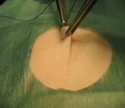 Tras dar una doble lazada, tensionamos paralelamente a la herida y realizamos la primera aproximación de los bordes.