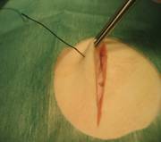 Lo podemos emplear también para dividir una herida larga en dos mitades, y asi disminuir la tensión que ha de soportar, utilizando luego en cada una de las mitades resultantes otro tipo de técnica más simple.