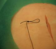 Vista del recorrido del hilo en el primer punto con lazo en el extremo distal haciendo de tope.