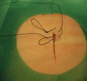 La Aguja entra por un borde de la herida, formando un ángulo de 90º con respecto a la piel.